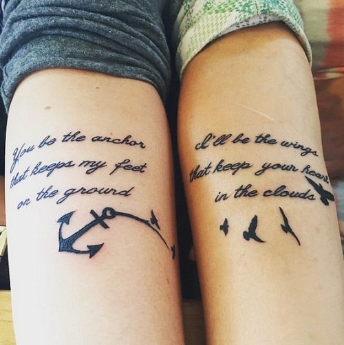 99. Anchor and Black Birds with Best Friend Quote Tattoos
