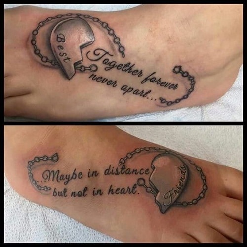 Friendship or best friend tattoos will symbolize your unbreakable bond with each other. However, you have to thoroughly consider a lot of things before you get one. Are you sure she/he will not betray you? How deep is the bond? Will he/she not leave you years after? Once you have assessed that your friendship will never wither, that’s the only time you both must get matching best friend tattoos. Remember, it will be etched on your skin forever, therefore, you need to thoroughly weigh things.