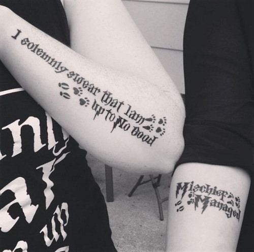After having best friend tattoos, each of you must remind one another that it must be well-taken care of. Apply antibacterial creams on the first 3 days, and let both wounds heal on their own. Do not take off the scabs as it will freshen up the wound and will turn out really bad afterward. Also, avoid touching it often so as to avoid infection.